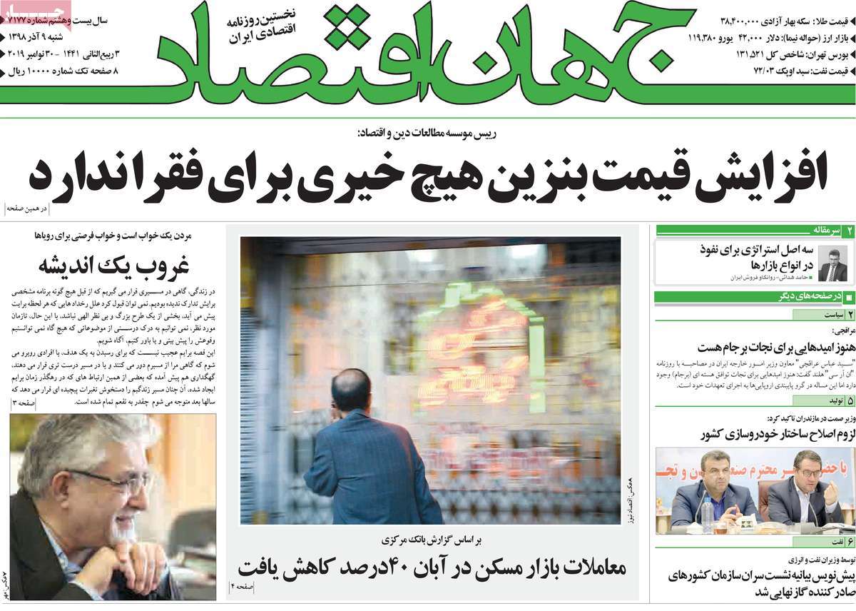 به گزارش خبرنگار خودروکار، صفحه نخست روزنامه های اقتصادی 9 آذر ماه کشور به شرح زیر است: انتهای پیام/