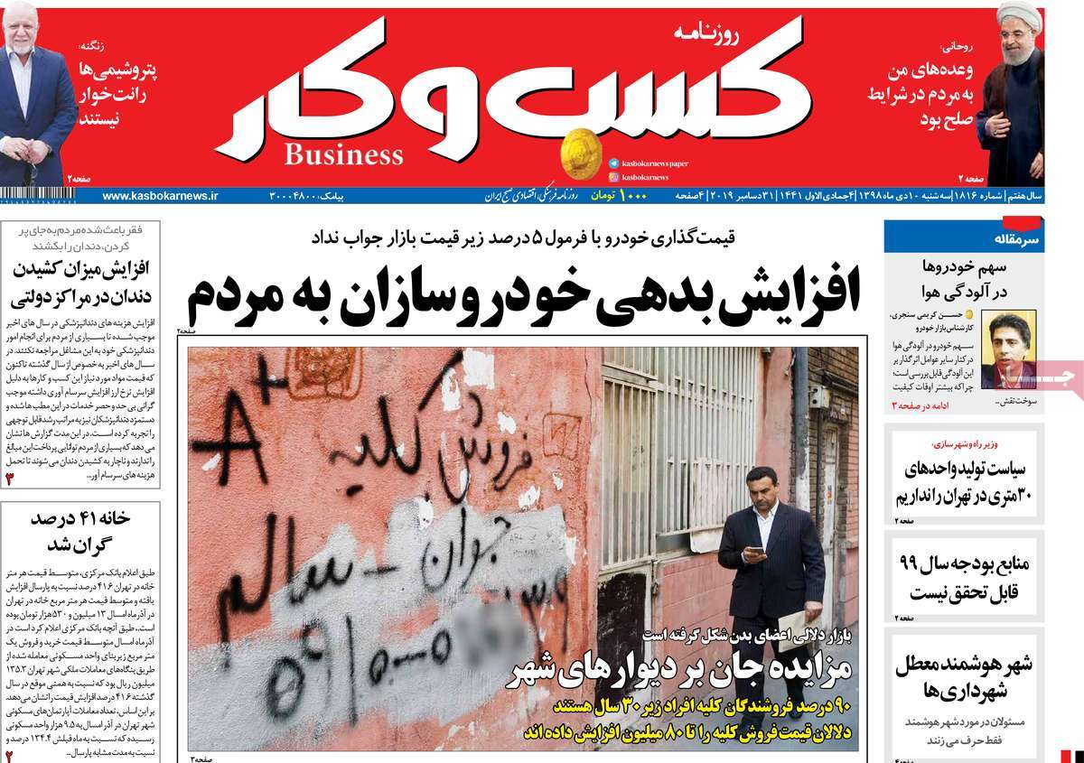 صفحه نخست روزنامه های اقتصادی 10 دی ماه در خودروکار منتشر شد.