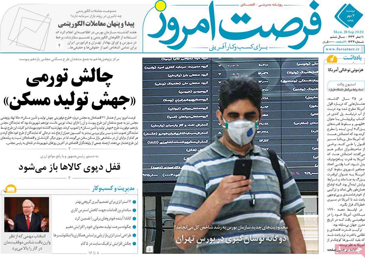 به گزارش خبرنگار خودروکار، صفحه نخست روزنامه های اقتصادی 7 مهرماه کشور به شرح زیر است: