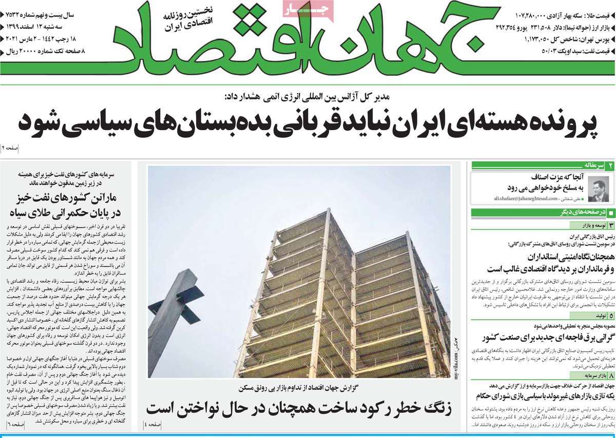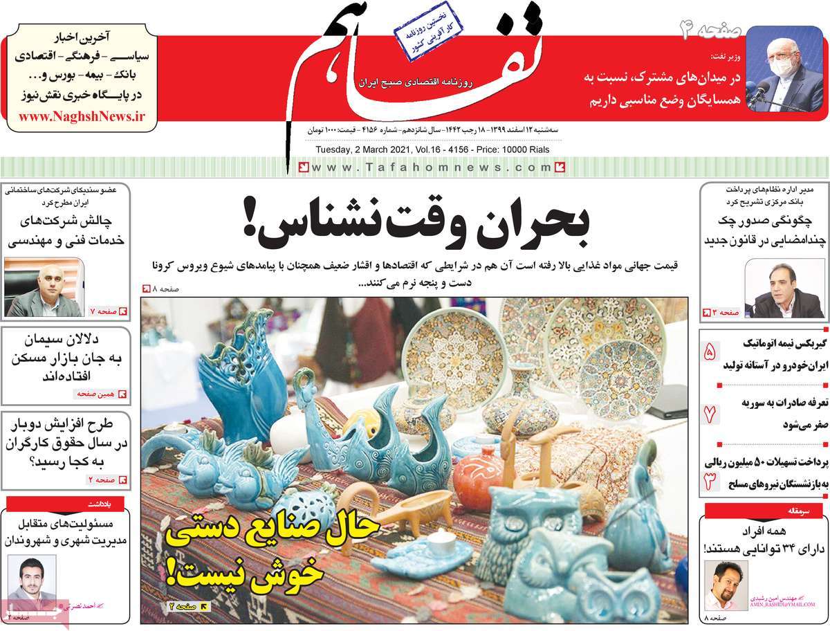 به گزارش خبرنگار خودروکار، صفحه نخست روزنامه های اقتصادی 12 اسفندماه به شرح زبر است: